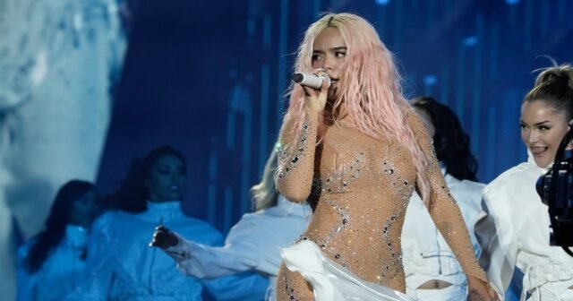 Karol G foi um dos principais artistas do Coachella 2026, que apresentou suas músicas, teve convidados especiais e encerrou seu show com o anúncio da ‘Tropicoqueta Tour’. – Dívida AFP