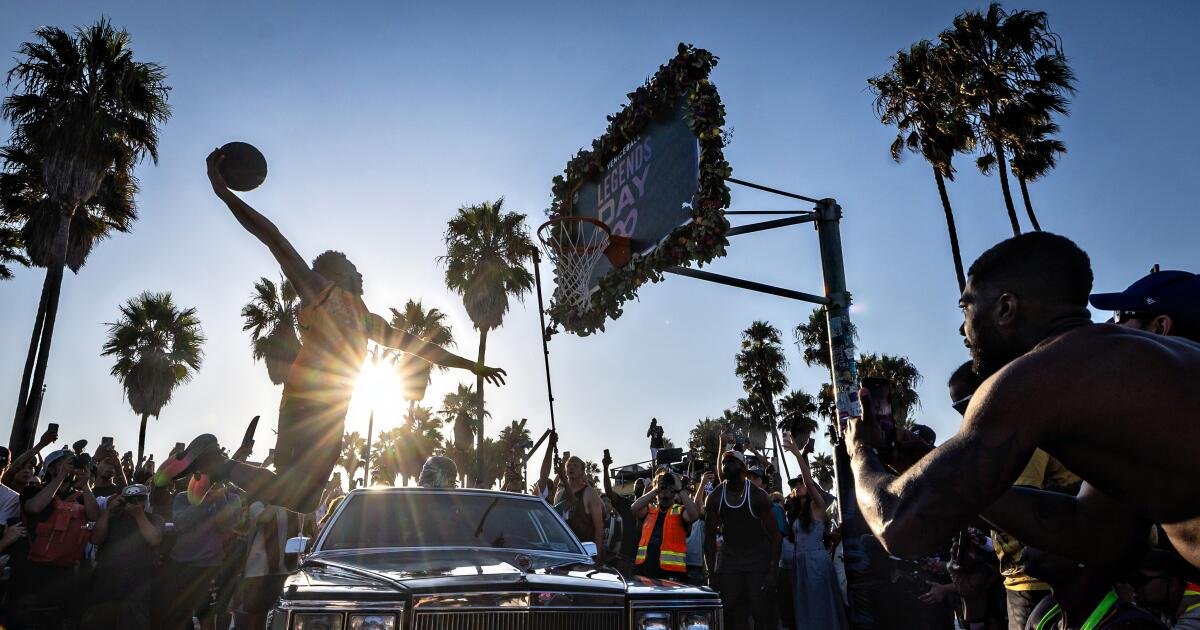 Kobe Bryant, os jogadores vão a Veneza Beach para homenagear a bola de rua