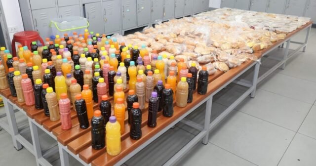 Receberam deste evento 135 sanduíches, 75 marmitas e 25 garrafas de sucos prontos para venda. Todos esses produtos são oferecidos sem permissão município em exame de saúdeo que resultou na sua prisão imediata pelas autoridades.