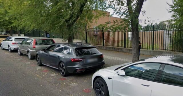 Uma das ruas do Hospital La Paz, em Madrid, conta com estes novos lugares de estacionamento. / Capturas de tela – Google Maps