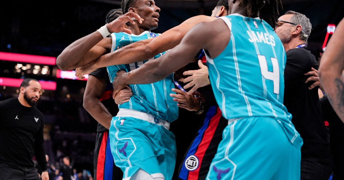 Foi no terceiro trimestre que aconteceu o grande acontecimento, quando Jalen Durendos Pistons, foi para a linha lateral e parou no violação por Moussa Diabatepor Carlota. Duren imediatamente confronta Diabate, dando cabeçadas e depois empurrar com a mão aberta de Duren ao rosto de Diabate, a situação piorou. se Tobias Harris Ele manteve o Diabate, este ele deu um soco em Duren e naquela época, Pontes de Milhas os Hornets entraram na briga com outro golpe em Duren, que respondeu na mesma moeda.