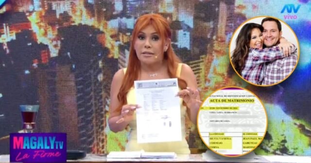 Magal Medina, ao iniciar uma nova edição Magaly TV, La Firmeapareceu na frente da câmera segurando um documento que causou uma pausa instantânea. “Olá, boa sorte. Bem-vindo. Isso é uma TV legal, la firme. E o que tenho na mão é Certidão de casamento“Ele disse enquanto mostrava a carta que ninguém no estúdio parecia ter visto antes.