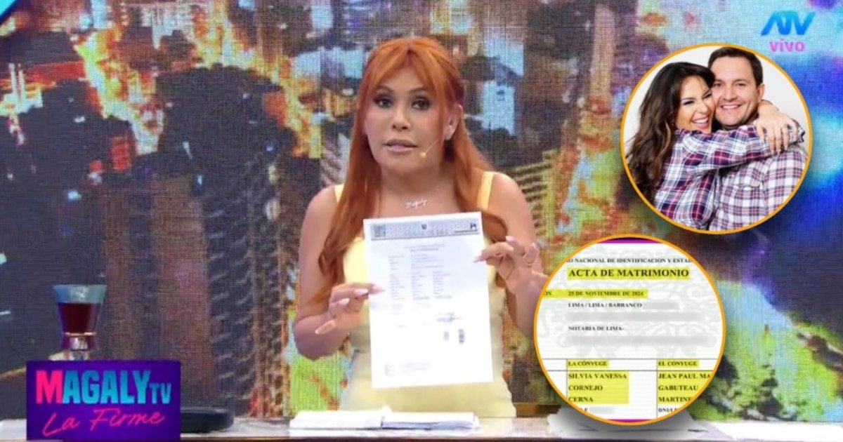 O apresentador garantiu que nem sua equipe nem sua equipe sabiam dessa informação até então, o que aumentou o impacto do que iria mostrar. Magaly explicou que o documento corresponde a um casamento civil entre Silvia Cornejo sim Jean Paul Gabuteaurealizado em total sigilo 25 de novembro de 2024foi um ano antes do show ser transmitido ao vivo.