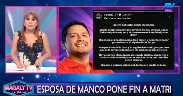Esta rodada foi interpretada como uma aceitação tácita da situação. “Senhora, minha esposa é uma mulher crescida e não merece passar por tudo isso. Se alguém falhou, fui eu” acrescentou o ex-ator, que também anunciou sua presença no programa:”Hoje estarei no programa da Magaly Medina, onde contarei a verdade“.