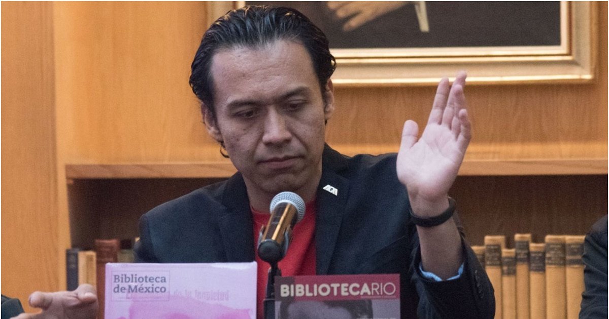 Marx Arriaga iniciou a conferência acusando que “o projeto nacional de livro didático gratuito e o Escola do Novo México está sob ataque novamente… o contraste é mais aparente.” Ele garantiu que seu gerente protegia as cópias publicadas.