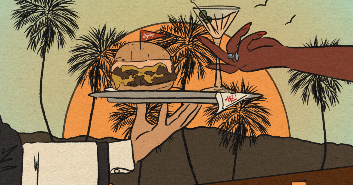 A primeira coisa a saber sobre o restaurante mais popular de Palm Springs é que as reservas são quase impossíveis. As reservas estão abertas um mês por dia; Minha viagem de Los Angeles para Palm Springs é mais frequente. Fiz as pazes fazendo fila antes do restaurante abrir, às 17h, e começando cedo no bar. Avery Underhill, o bartender principal, também me apontou que o período das 18h30 às 19h15 geralmente é quando chega a primeira onda de assentos no bar, e tive sorte mais de uma vez.