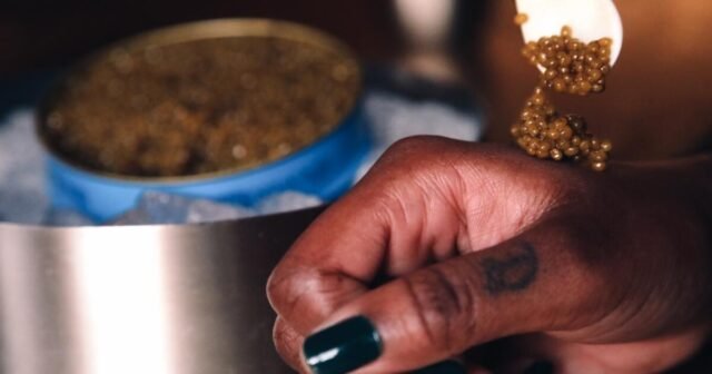 O caviar está em toda parte, não apenas recebe um menu de restaurante de alto coração como um dia, mas é oferecido de uma forma divertida e reativa que captura a atenção da nova multidão de refeições.