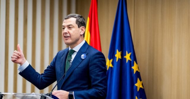 Juanma Moreno transmitiu estas mensagens numa nota na sua conta na rede social ‘X’ em conformidade com o 40.º aniversário celebrado em 2026 da inclusão de Espanha “no espaço mais aberto de liberdade e paz de espírito do mundo”, apontando para a União Europeia, “o melhor exemplo de que avançamos mais quando avançamos com presidente”, por causa da proteção do presidente andaluz.