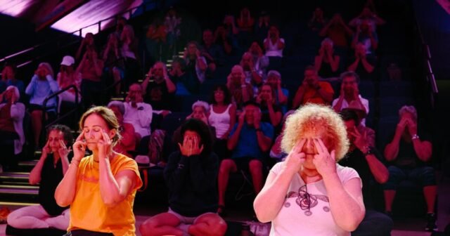 Anteriormente, cerca de 50 visitantes gostavam de meditar no teatro de teatro A-Frame, o antigo médico traiu um professor. Wolfe incentivou o povo a “depender da força da comunidade”.