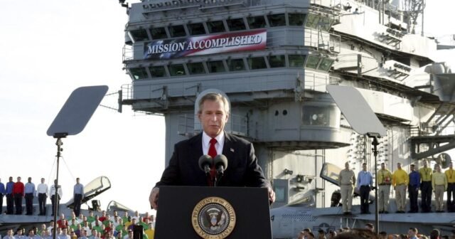Em 2003, o presidente George W. Bush subiu confiantemente ao convés de um porta-aviões menos de cinco semanas depois de ordenar a invasão do Iraque e declarou o “fim das grandes operações de combate” sob uma bandeira que proclamava “Missão Cumprida”.