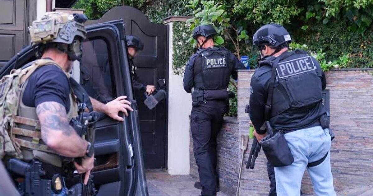A filmagem, postada nas redes sociais, mostra membros da unidade de Homicídios, Gangues e Narcóticos se aproximando de uma casa em uma rua arborizada armados e portando armas. A estrada está localizada na Sunset Boulevard, em uma rua cheia de celebridades onde viveram pessoas como Kendall Jenner e Emily Blunt e onde Jimmy Kimmel se descreveu como o capitão da vigilância do bairro.