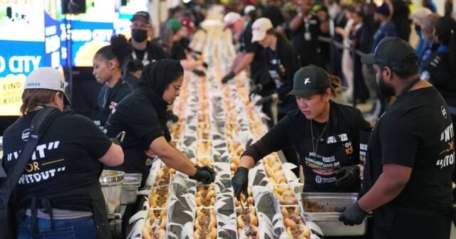 Restaurantes como Chickie’s e Pete’s, Bifes de Geno, Cheesesteaks famosos de Jim’s South St., Bifes Passyunk sim Tony Lucas participou ativamente na preparação. Trabalhadores e materiais contribuíram para a montagem 1.291 sanduíchesconsistente sem interrupção para atender aos padrões de Recordes Mundiais do Guinness.