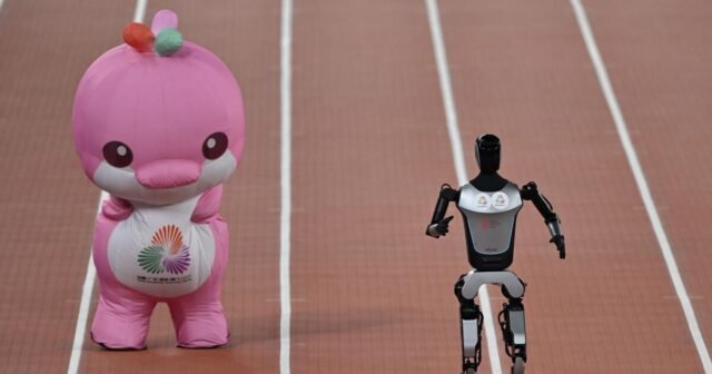 O robô repetiu a corrida de 100 metros antes da cerimônia de abertura dos Jogos Mundiais Humanóides em Pequim, em agosto.