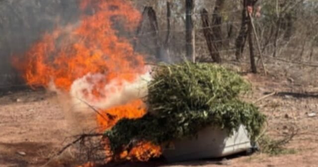 Na rede social, eles compartilharam parte das drogas queimadas pelas unidades federativas. Crédito: SSP Sinaloa