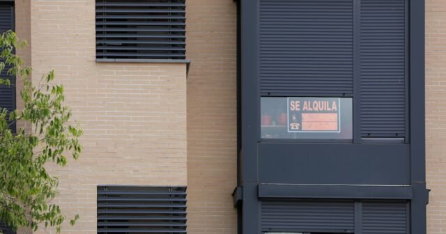 Na lateral de uma casa você pode ver uma placa de ‘Aluga-se’ sob as persianas de uma casa (Jesús Hellín / Europa Press)