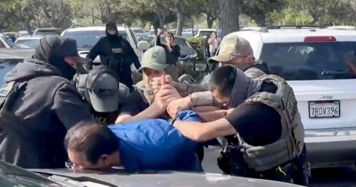 Agentes federais de imigração foram vistos no estacionamento do tribunal em Rancho Cucamonga por volta das 9h e começaram a prender pessoas quando elas saíam do prédio até o meio-dia, disseram os advogados. Testemunhas disseram à ABC7 que um homem foi cercado pela polícia no estacionamento com seu filho pouco antes das 9h30. Imagens de vídeo mostram agentes mascarados cercando um homem, algemando-o e colocando-o na traseira de um SUV.