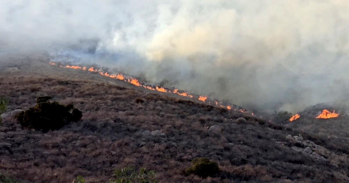 Chamado de incêndio de pirita, às 17h19 como um incêndio ardente de 15 luzes ativas perto de Pyreite Street e Granite Hills, explicando o departamento da Califórnia e da Califórnia.