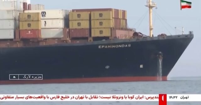 o Televisão estatal iraniana o navio divulgou uma foto MSC Francesca sim Epaminondasestacionado perto do estreito quando foi preso pelo Corpo da Guarda Revolucionária Islâmica (IRGC) sob a acusação de tentar entrar sem permissão.