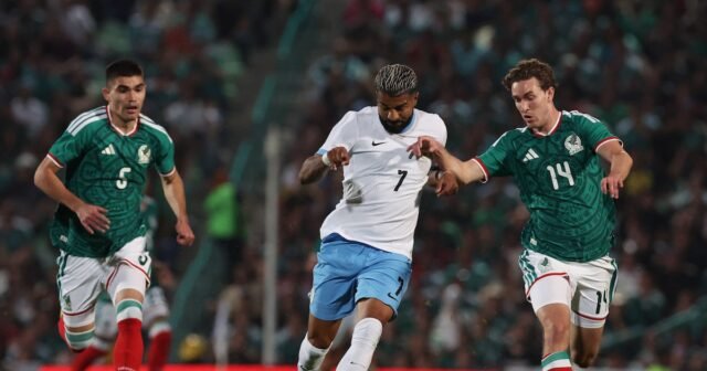 Min. 96: Com a cabeça na mão de Corpo a corpo De João Vasqueztermina a partida no estádio Tsm Corona. quando 96 minutos jogo, ou uma das duas equipes conseguiu fechar o empate em um duelo estratégico entre Aguirre sim Bielsa.
