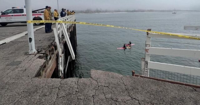 Testemunhas disseram que viram o carro explodir através dos trilhos de madeira às 9h44 de domingo. Quando os bombeiros chegaram, encontraram o trecho danificado a cerca de dois terços do início do cais.