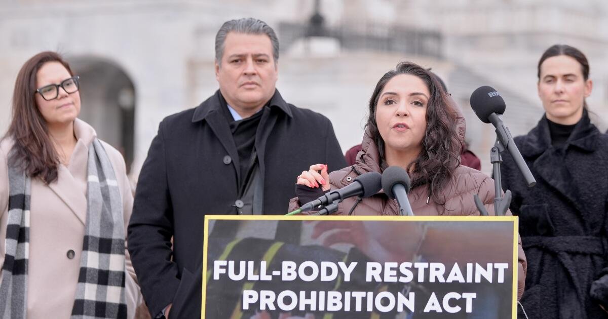 O Departamento de Segurança Interna seria proibido de usar dispositivos de contenção de corpo inteiro chamados WRAPs sob um novo projeto de lei apresentado na Câmara na quarta-feira.