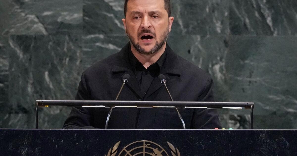 Zelensky citou o pódio do vasto Hall da Assembléia diariamente depois de encontrar o presidente Trump, que apoiou os esforços da Ucrânia e criticou a Rússia. Trump diz que a Associação do Presidente Vladimir Putin acreditava que o presidente Vladimir Putin foi capaz de restaurar todas as províncias na Rússia, o chamado repentino dos pedidos dos EUA para interromper a guerra em fevereiro de 2022.