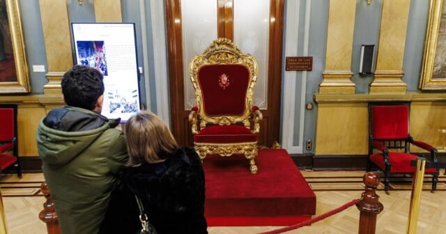 Um dos destaques da programação indoor é o trono do chefe do conselho, uma sembra e nitsuba sembair neobarroca que reúne histórias relacionadas à era política espanhola. Segundo a Europa Press, esta sede foi utilizada, de diferentes formas, por figuras como Isabel II, Alfonso i Saboy, Alfonso Xii e Francisco Franco, este último durante o período franquista, quando Amazela instituiu o conselho nacional. Dos dois tronos feitos no século XIX, apenas um permanece no centro, de 1844. A parte de trás do trono exibia as armas de Juan Carlos I, embora ele não as utilizasse para eventos oficiais.
