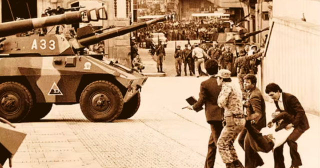 Entre 6 e 7 de novembro, o grupo guerrilheiro M-19 assumiu o palácio da justiça processando o presidente Belisario Betancur – crédito ALP