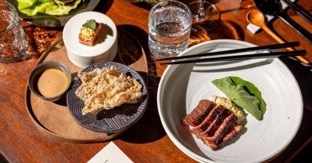 O jantar na sala de jantar principal custa US$ 275 por pessoa, com um delicioso menu de clássicos do Kato por US$ 170 no bar, perfeito para jantares individuais e geralmente inclui um prato de caviar, licor de mexilhão, creme de alho e pão recheado com leite. É divertido, mas a experiência central parece mais refinada e enérgica cada vez que visito. A maioria dos pratos é obscura, com sugestões de nossa cultura – um prato de sashimi aqui, ingredientes mexicanos ali – mas a comida de Yao vem de um lugar interior. Este sou eu, ele disse. E quando provamos, entendemos: isto é Los Angeles.