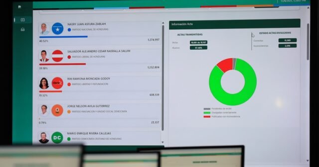 De acordo com a informação preliminar divulgada pelo próprio Conselho o candidato do Partido Nacional Nasry “Tito” Asfuraliderar a eleição com 40,54% dos votos. Em segundo lugar está Salvador Nasrallado Partido Liberal, com 39,19%, enquanto o candidato do Partido da Liberdade e Refundação (Libre), no poder. Rixi Moncadavem em terceiro lugar com 19,29%. Moncada e o seu partido questionaram o processo e discordam dos resultados até agora.