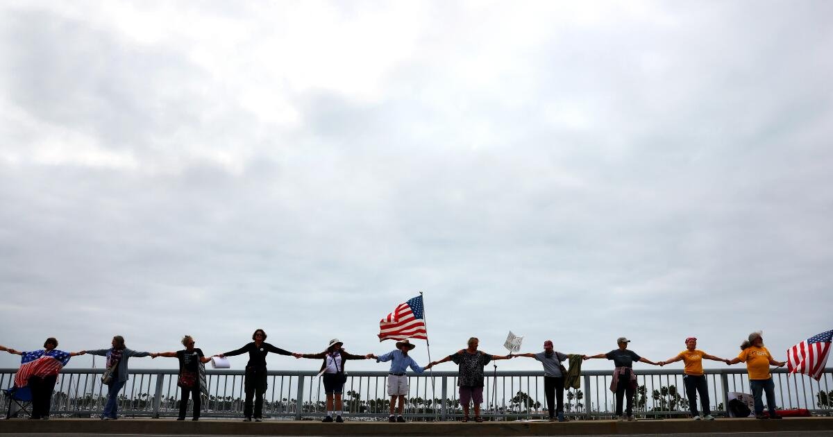 Centenas de pessoas se reuniram em toda a praia de Southern aos sábados para o sábado “até Donald Trump e a promoção de Gov Gov