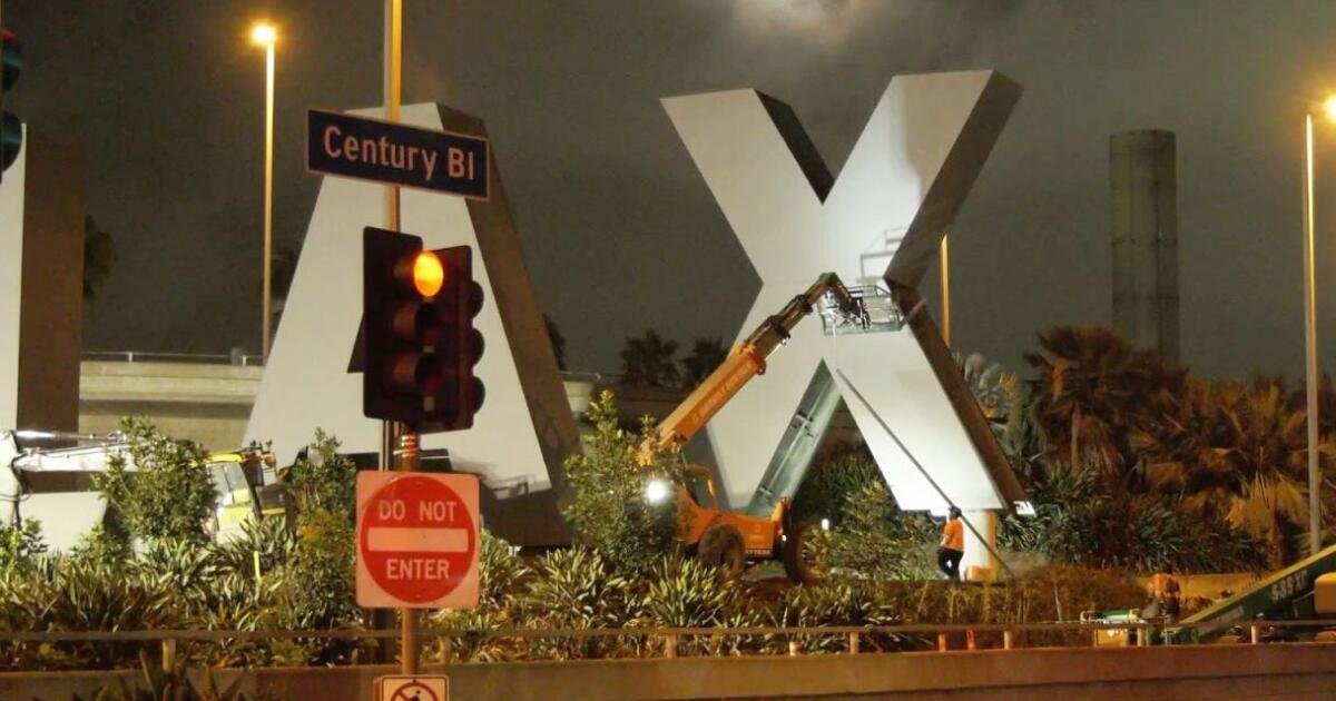 A placa gigante “LAX” que recebeu passageiros no aeroporto de Los Angeles durante os últimos 25 anos foi descartada para criar um grande projeto.