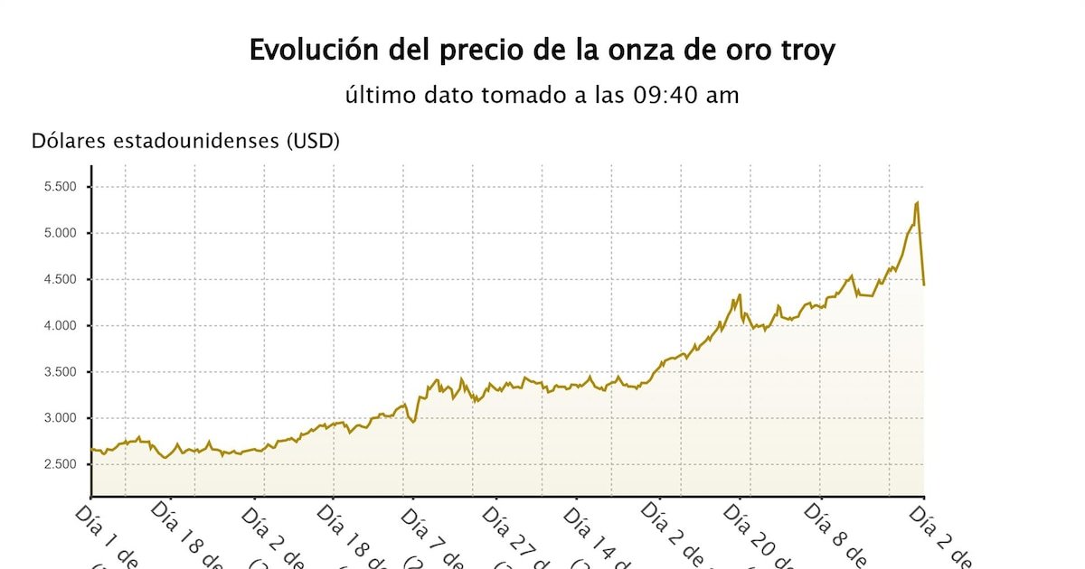 Na segunda-feira, o preço do ouro atingiu os 4.402 dólares por onça, uma queda de 7% face ao final da sessão anterior e 21% abaixo do máximo histórico de 5.595 dólares registado uma semana antes. Pelo contrário, a prata sofreu uma queda mais pronunciada: o preço caiu para 71,4 dólares, o que representa uma queda de 12,4% face à anterior e uma descida de 41% face aos 121,6 dólares alcançados há um dia. Como resultado, a capacidade de ambos os metais manterem os seus ganhos diminuiu, com os preços do ouro apenas 1,3% acima do seu valor de fecho em 2025, enquanto a prata subiu pouco mais de um décimo no final do ano, de acordo com relatos da comunicação social.