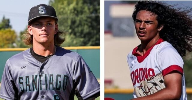 O técnico de beisebol da Corona High brincou sobre a busca por um contrato NIL para o jogador da segunda base Chris Woodson, sobre seu cabelo se movendo em várias direções conforme o vento sopra enquanto ele tenta manter o chapéu.