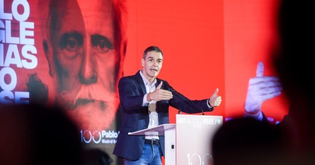 O presidente do governo e secretário-geral do PSOE, Pedro Sánchez, discursa durante o evento comemorativo do aniversário da morte de Pablo Iglesias Posse (Gustavo Valiente / Europa / Europa Press)