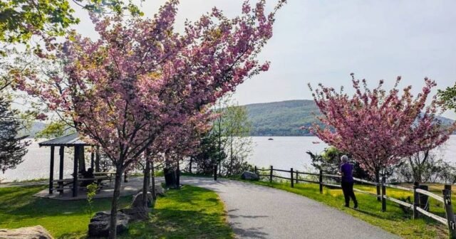 Os agendamentos estão ativados Parque Verde Ribeirinhoonde 100 cerejeiras Apresentados pelo Rotary Club local, transformam a zona ribeirinha num local a contemplar em todas as estações. Os visitantes podem visitar o parque, apreciar a vista Terras Altas de Hudson e participando de atividades familiares.