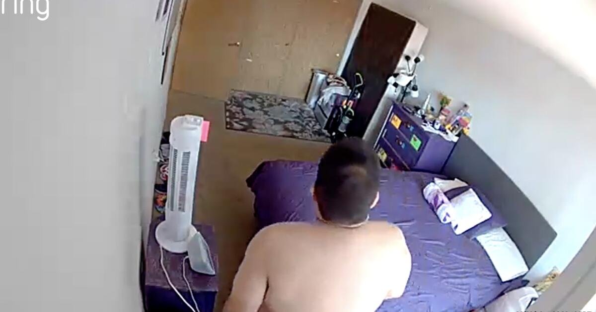 Vídeo de vigilância compartilhado por Anderson com o The Times mostra um homem tirando a roupa antes de ser atacado por sua mãe. A família instalou a câmera quando ele se mudou para casa por causa de sua doença, disse Anderson.