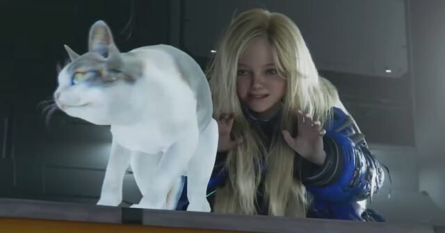 Um dos momentos mais óbvios de quebra da quarta parede envolve uma parede holográfica. Uma postagem de alguém chamado Sharon descreve sua criação, dizendo que foi construído para “celebrar esta criatura histórica”, apesar da desaprovação de seus superiores. Ao atravessá-la, Hugh mostra sua confusão.