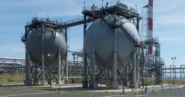 Visão geral da planta de gás natural liquefeito na ilha de Sakhalin, no Pacífico, Rússia. (REUTERS/Vladimir Soldatkin)