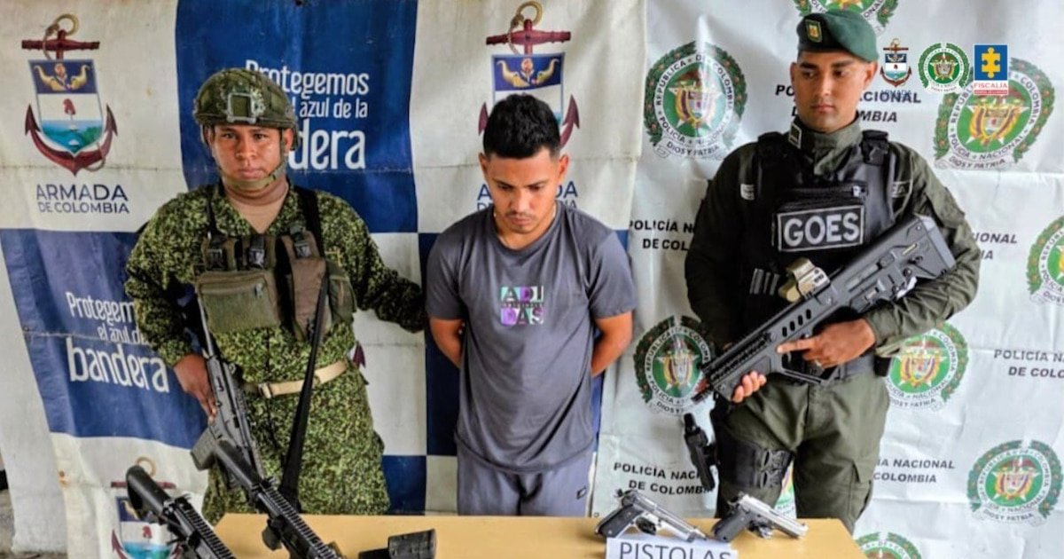 O detido é identificado como Brayan Andrés Robayo, detido em 20 de dezembro na localidade de La Esperanza, distrito de Bajo Calima, área conhecida pela presença de grupos armados ilegais e disputas pelo controle territorial.