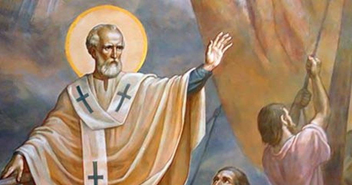 Nicolau de Myra (Demre, Demre, Türkiye) é um bispo conhecido pelo seu conhecimento concreto. A tradição mais popular diz que, para evitar acusações contra a família pobre, ele deixou três sacos de ouro para a filha, à noite e em segredo. Dessa história nasceram mais tarde os rituais do Natal, como meias pela casa ou sapatos na porta – para receber presentes. Sua reputação de protetor se estendeu também aos marinheiros: foi chamado durante uma tempestade, o navio chegou ao porto; É por isso que ele trabalha com marinheiros e crianças.