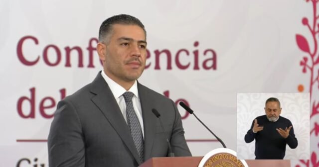 O chefe do Secretário Federal de Proteção Civil, Omar García Harfuch, explicou que a rápida atuação das autoridades e a intervenção do agressor fizeram com que não houvesse mais mortes. Foto: Captura de tela da coletiva de imprensa matinal
