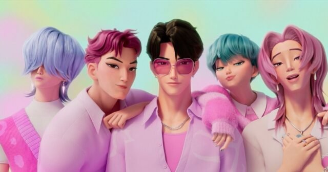 - “Crie uma foto dos Saja Boys com luzes e cenários futuristas.”