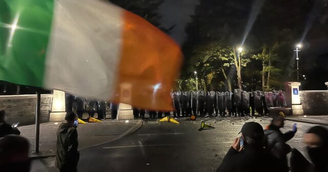 A Gardta, a força policial irlandesa, indicou que seis pessoas foram presas e que os funcionários públicos foram “Violência persistente“Quando os manifestantes Colocaram tijolos, garrafas de vidro e fogos de artifício contra eles.