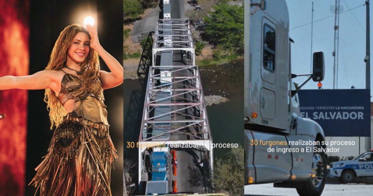 A equipe técnica e de produção que se reúne Shakira chegou lá El Salvador durante a madrugada, equipamentos de transporte sonoro, iluminação e cenografia necessários para desempenho que artistas colombianos apresentarão Jorge o estádio “Mágico” González.