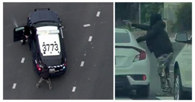 Início Notícias Tiroteio de ‘filme’ chocante em rodovia da Califórnia deixa suspeito morto e...