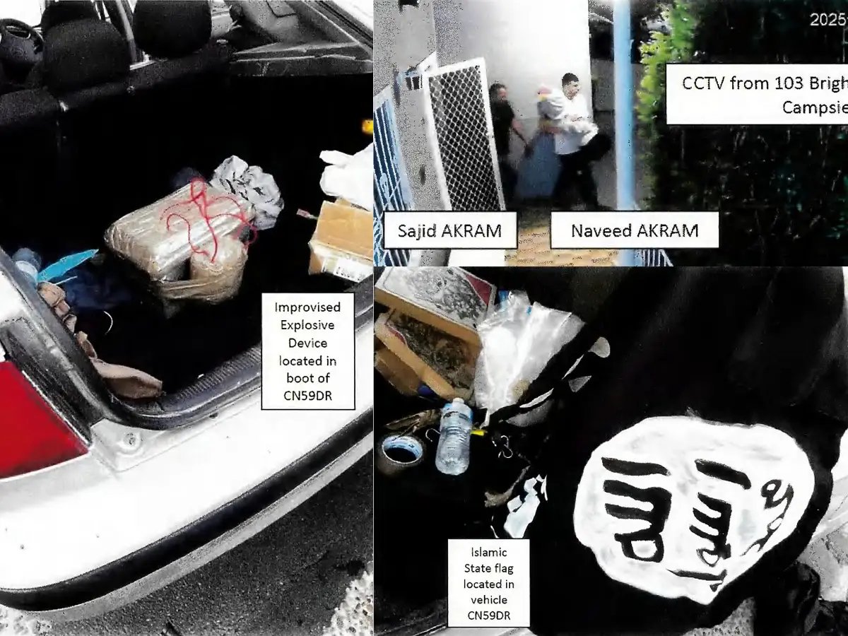 Por volta das 17h09, os suspeitos foram novamente capturados pelas câmeras de vigilância quando saíam do Airbnb, dirigindo-se para Bondi Beach, onde ocorreria o ataque. O carro parou perto da passarela pouco antes do início do tiroteio. Eles estariam a pé, armados e prontos para desencadear a violência.