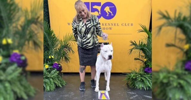 Um deslumbrante Dogo Argentino rouba a cena na famosa competição canina de Westminster, mostrando a beleza e a força do nativo argentino.