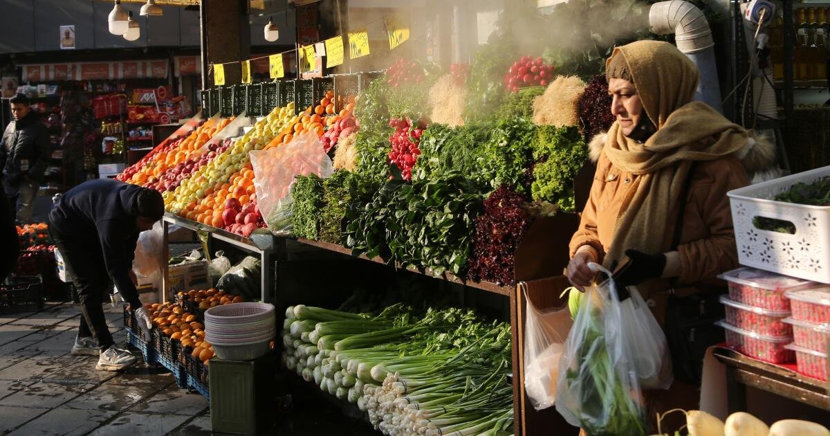 Uma vista de um mercado em Teerã, no Irã, na quarta-feira, enquanto as pessoas fazem compras em meio ao aumento dos preços e a uma rápida desvalorização da moeda durante a pior crise econômica do país desde 1979.