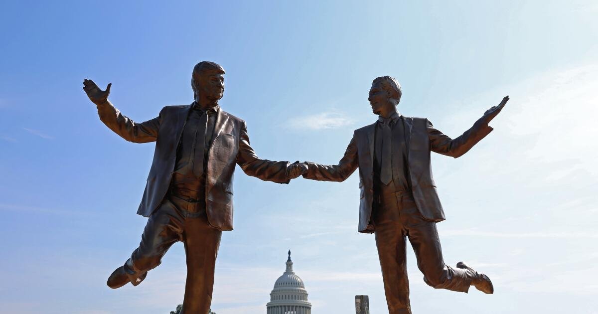 A estátua do “melhor amigo”, que inclui o presidente Trump e Jeffrey Epstein de mãos dadas, é danificada quando foi removida na quarta -feira no serviço nacional.